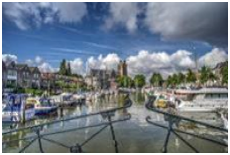 Het in de twintigste eeuw ontworpen Statenplein is het commerci le middelpunt van de stad. Op het nabijgelegen Scheffersplein staat een standbeeld van Ary Scheffer, de Dordtse schilder, en op de Visbrug een standbeeld van de gebroeders Johan en Cornelis de Witt. Op de Noordendijk staat de laatst overgebleven molen in Dordrecht: Molen Kyck over den Dyck. Dordrecht kent ook nog enkele hofjes: o.a. de Regenten- en Lenghenhof 1755), de Arend Maartenshof (1625), de Van Slingelandthof (1542), en de Clara en Mariahof (1880). In de loop van de eeuwen zijn in de stad diverse beelden en andere kunstwerken geplaatst. In de vishal (rijksmonument) aan de Vismarkt werd vroeger vis verkocht, die werd aangevoerd vanaf het aan grenzende water van de Knolhaven, onder andere steur en zalm uit de toen nog niet vervuilde rivieren.